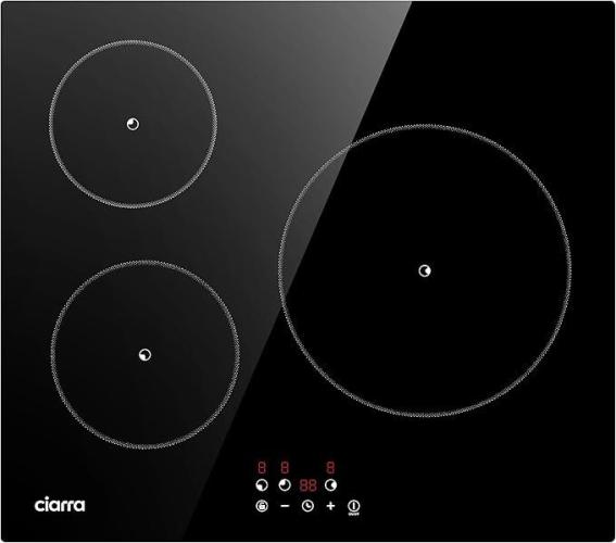 Minieme gebruikssporen, getest en werkend, volledig, ok, CIARRA Inductiekookplaat, 3 platen, 5600 W, kookplaat, 9 standen, touch-bediening, timer van 99 minuten, glas, zwart, CABBIH3-F, B0DR21NY2W