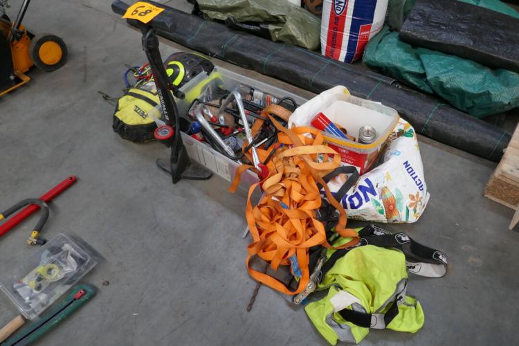 Fietspomp en helm - touwzak - fietselastieken - spanbanden - fluohasjes - muurhaken - enz…